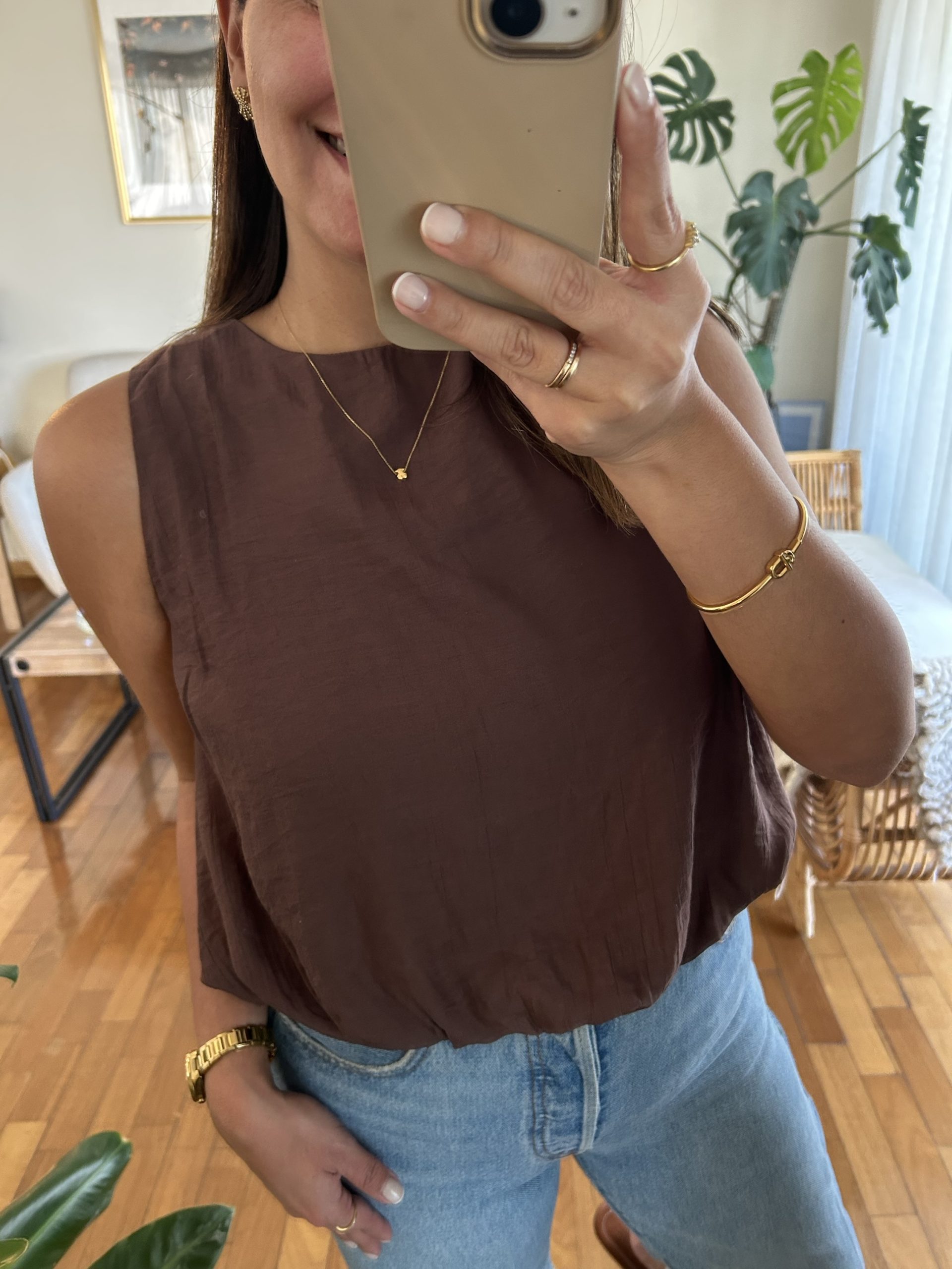 Blusa de Satin opaco de corte inferior tipo globo, con forro liviano para dar estructura y caída. Ideal para pantalones, faldas o shorts a la cintura