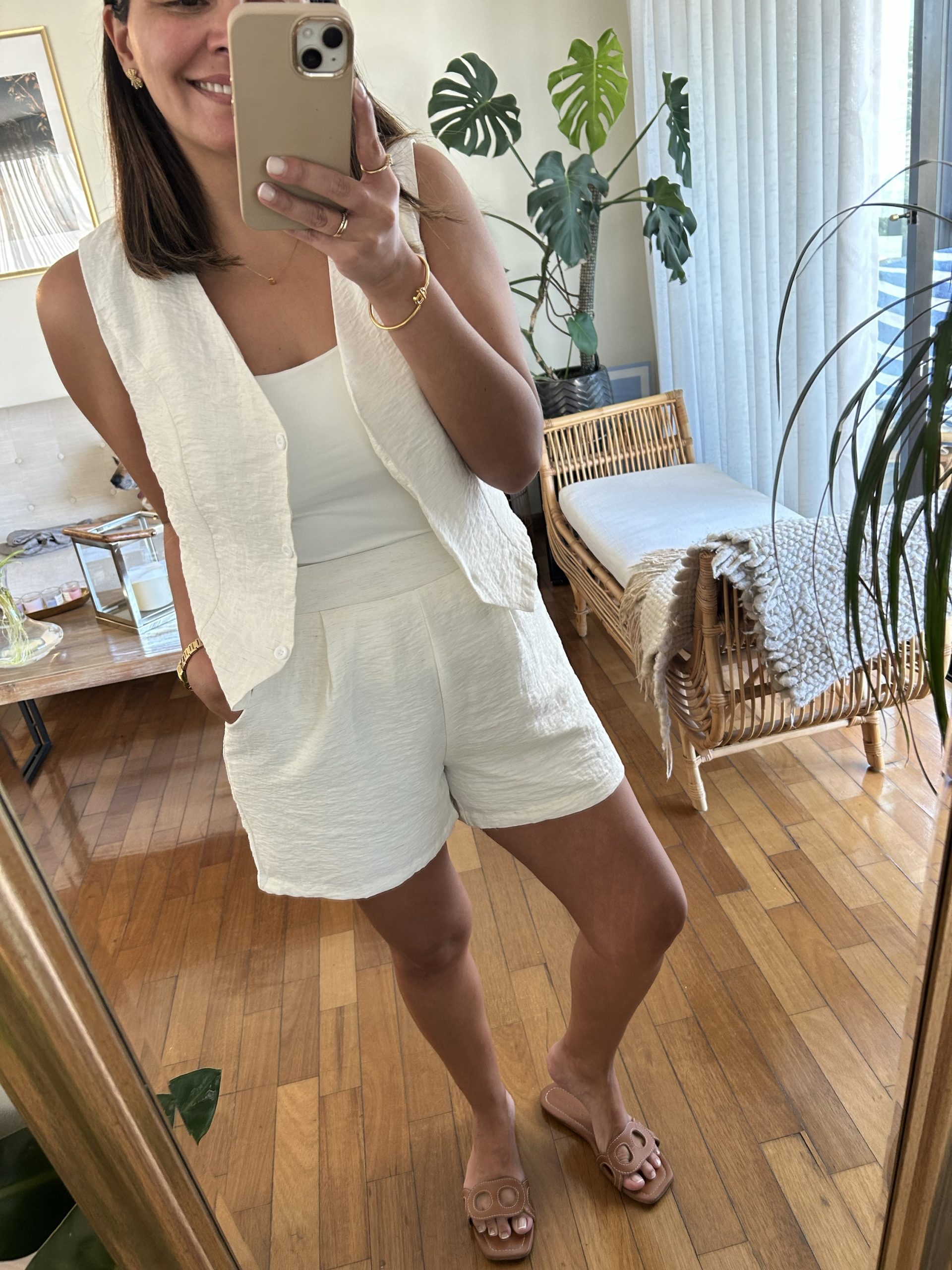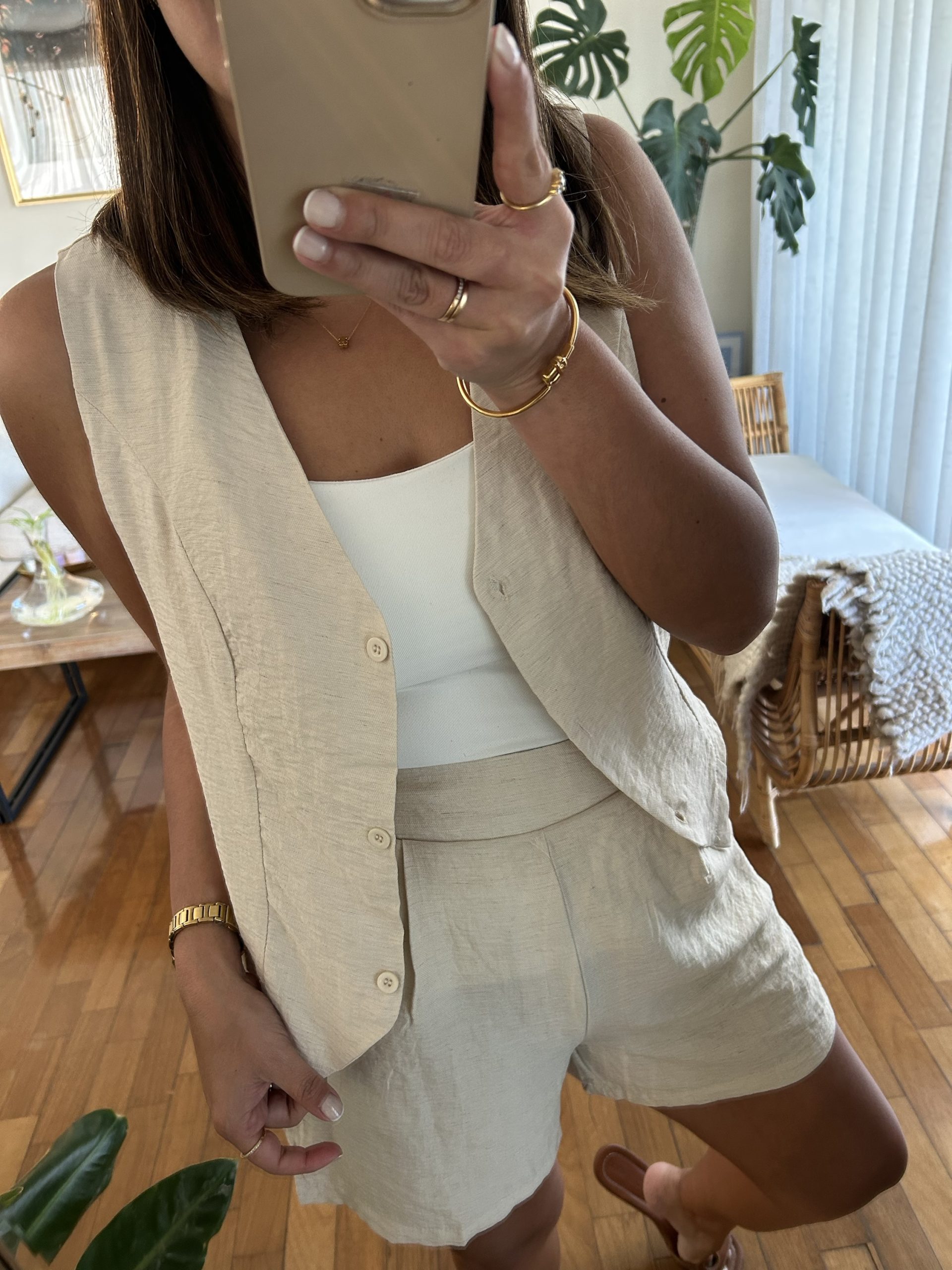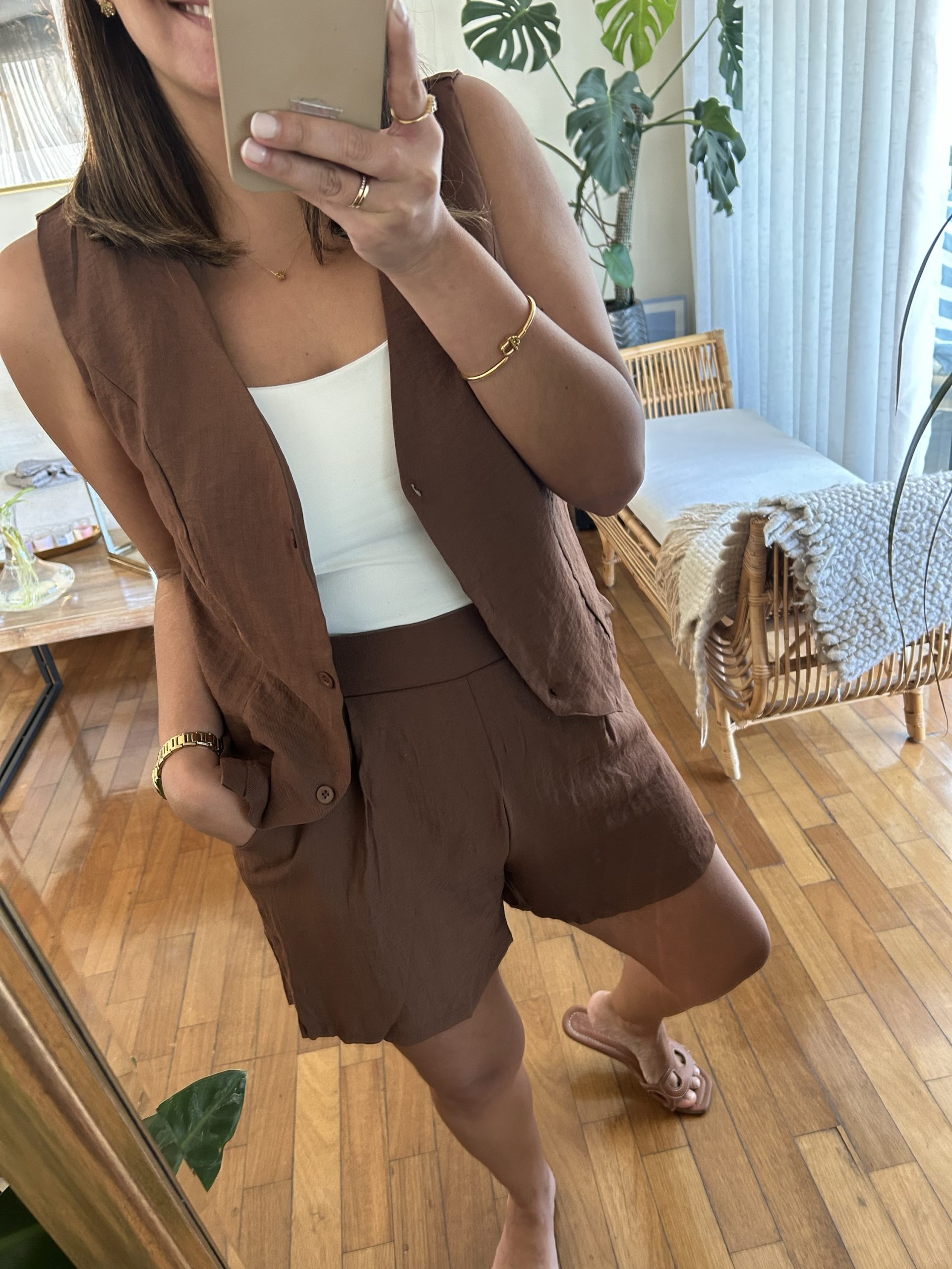 Conjunto de vest más short en viscosa con mezcla de lino.