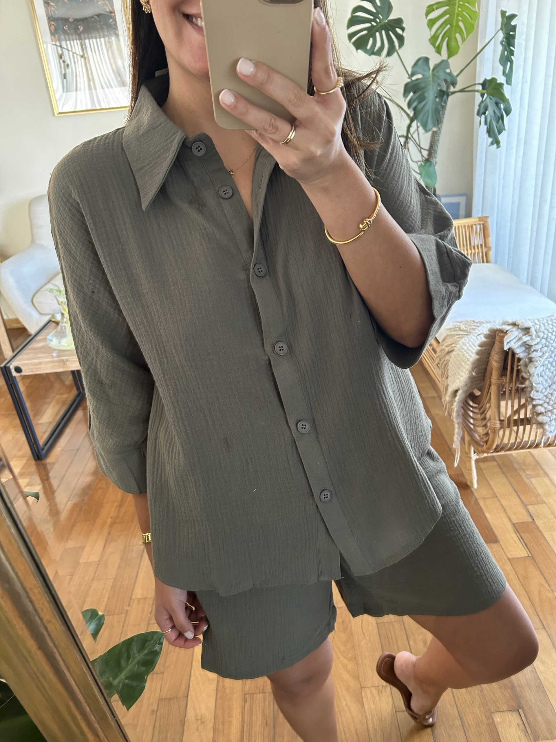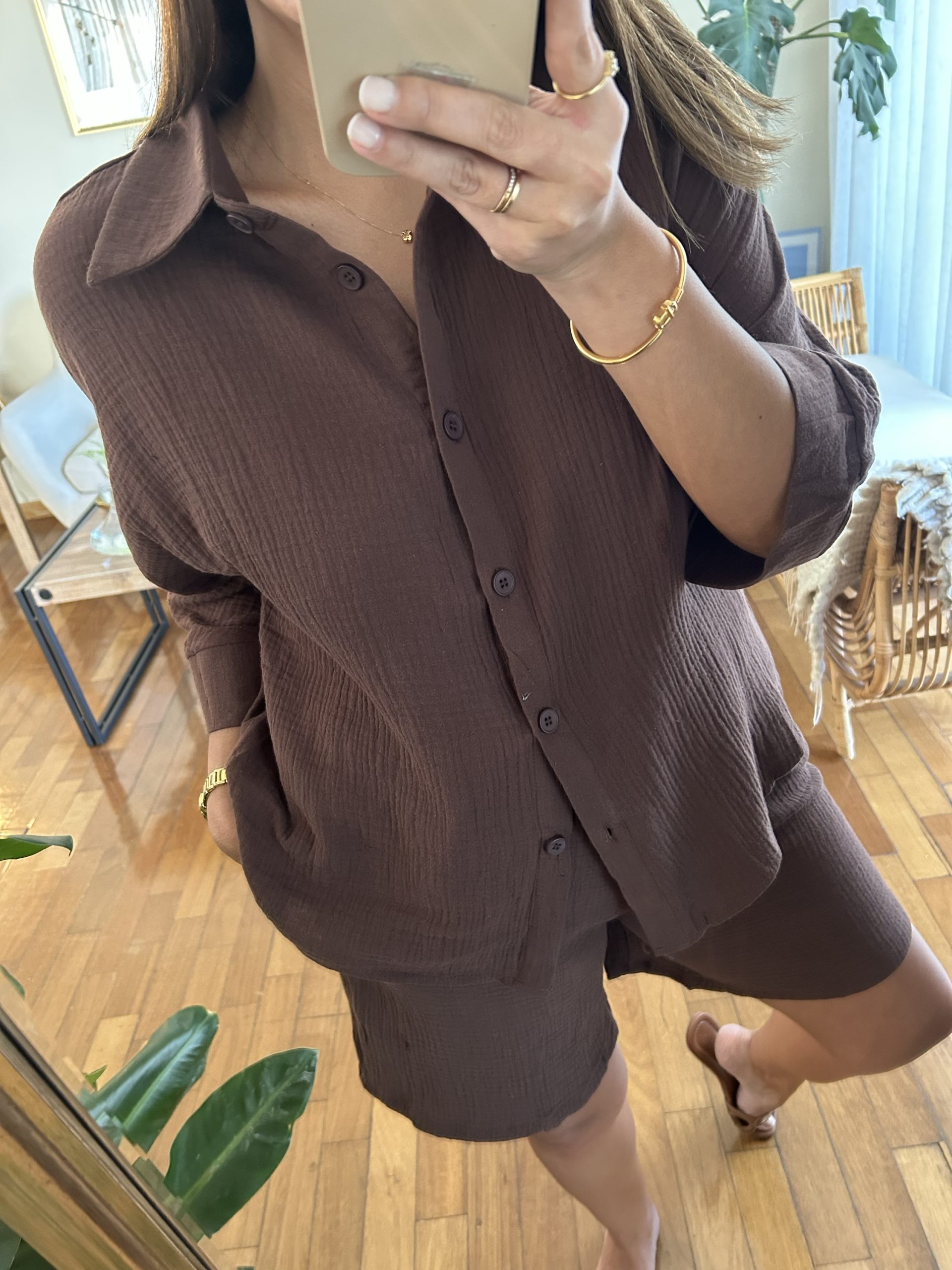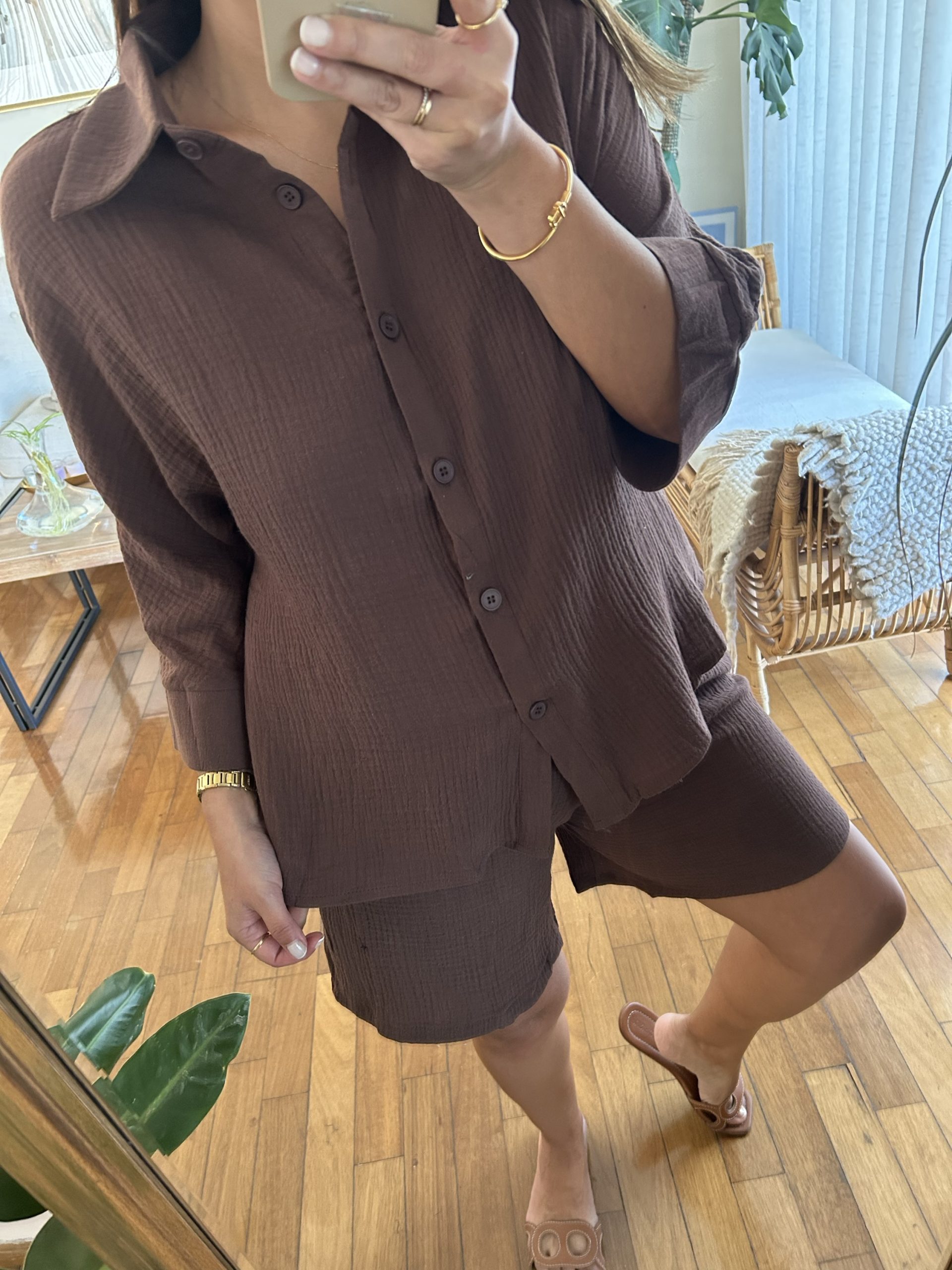 Conjunto de blusa más short en tela algodón tipo bambula.