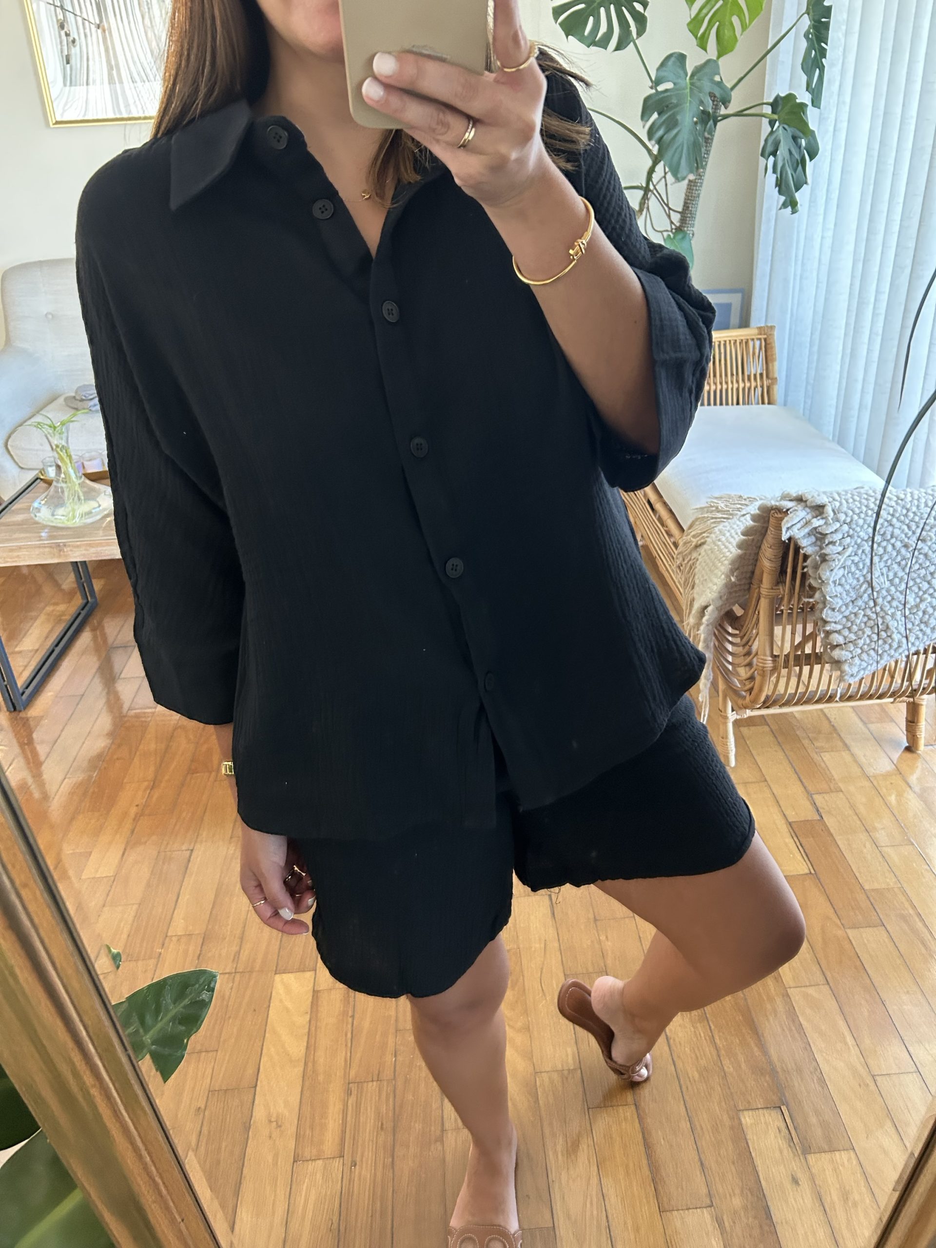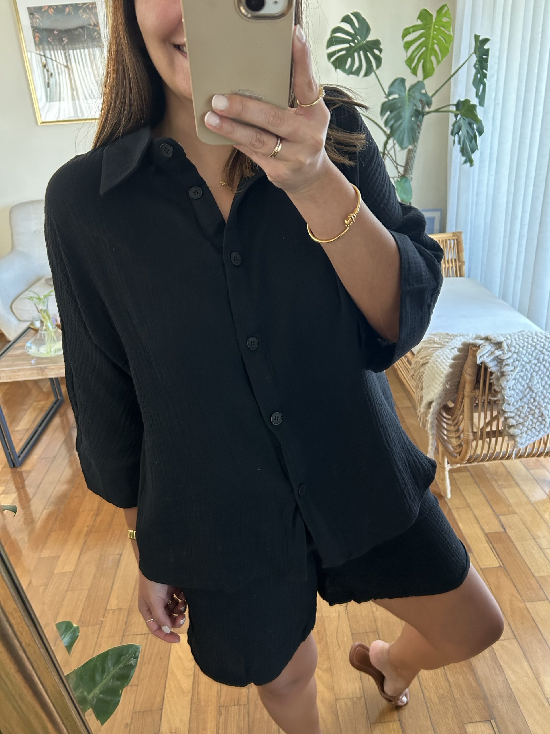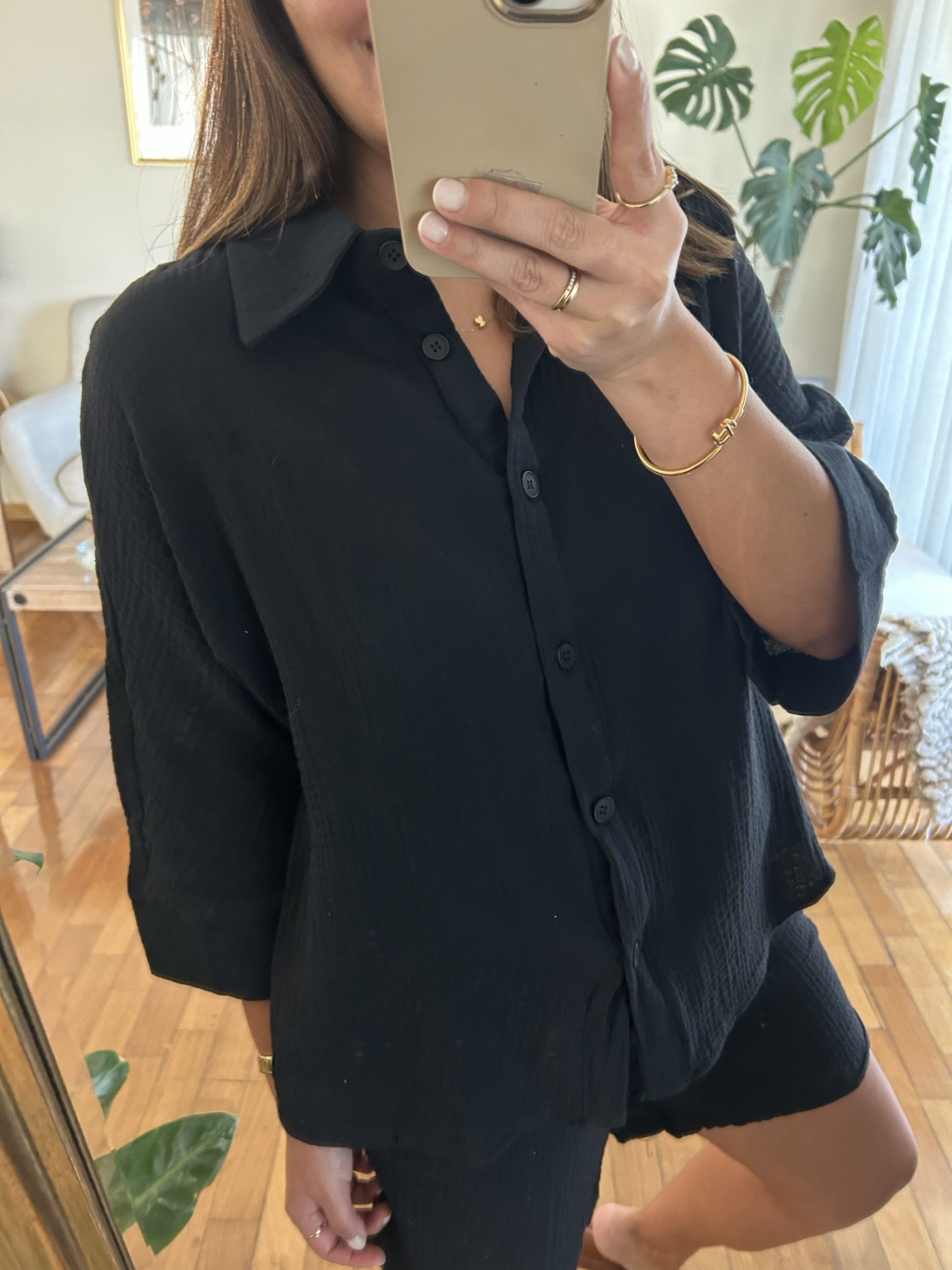 Conjunto de blusa más short en tela algodón tipo bambula.